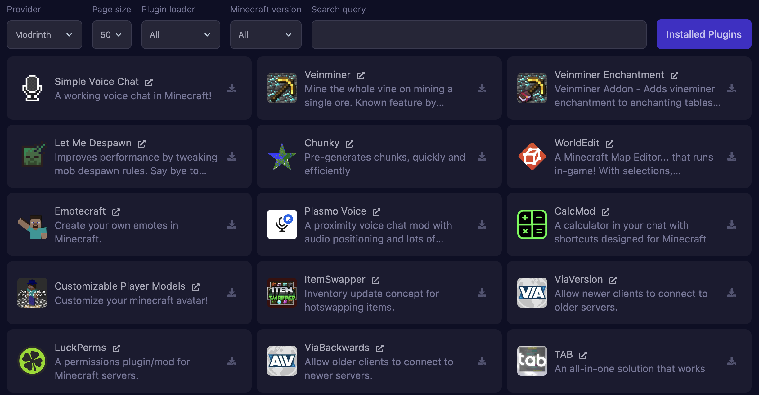 Take full control of your Minecraft server! Pick your server version, manage users, and install, tweak, or remove plugins—all from one place.