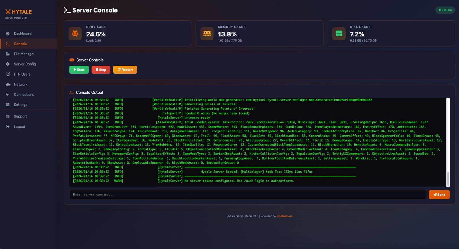 Take full control of your Hytale server! Choose your server version, manage users, and install, modify, or remove plugins, all from one place.